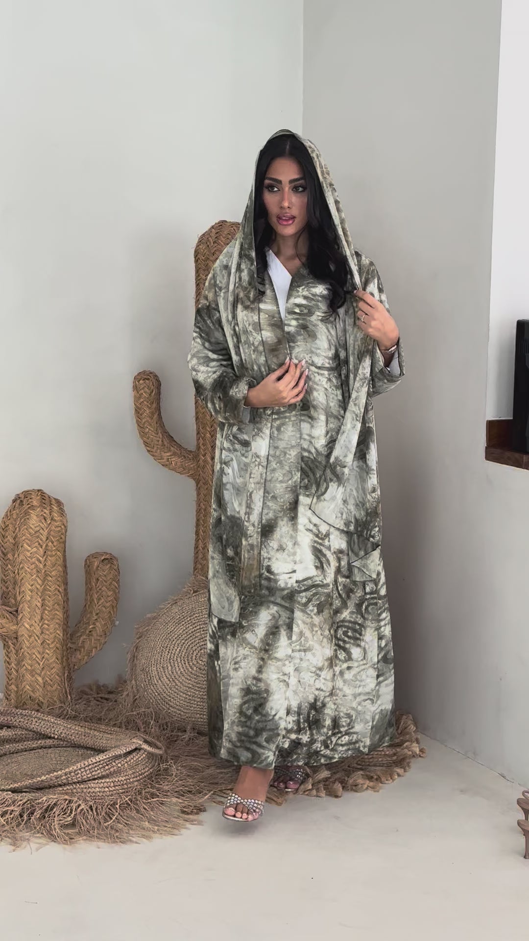 Softly flowing and artfully patterned, the Wave Abaya captures movement and texture in perfect harmony. Designed in a marbled blend of earthy rose and warm cocoa tones, it evokes the organic beauty of waves meeting sand. The lightweight fabric moves effortlessly, wrapping the wearer in understated sophistication.